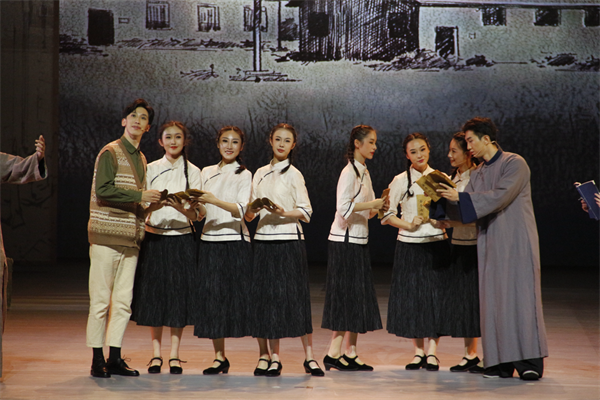 第一章“百年沧桑 薪火南迁”讲述了1937年抗战全面爆发,为保存中华民族文化教育命脉,北大、清华、南开三校被迫南下长沙。战火蔓延,南京沦陷,长沙岌岌可危。舞台上,灯光聚焦在一张斑驳的椅子上,四周是怀抱书本的学生们。彼时,偌大的华北已经安放不下一张平静的书桌。三校师生被迫再次南迁至云南昆明合组西南联合大学,其中湘黔滇旅行团的师生们徒步到昆,被称为“世界教育史上的一次长征”。