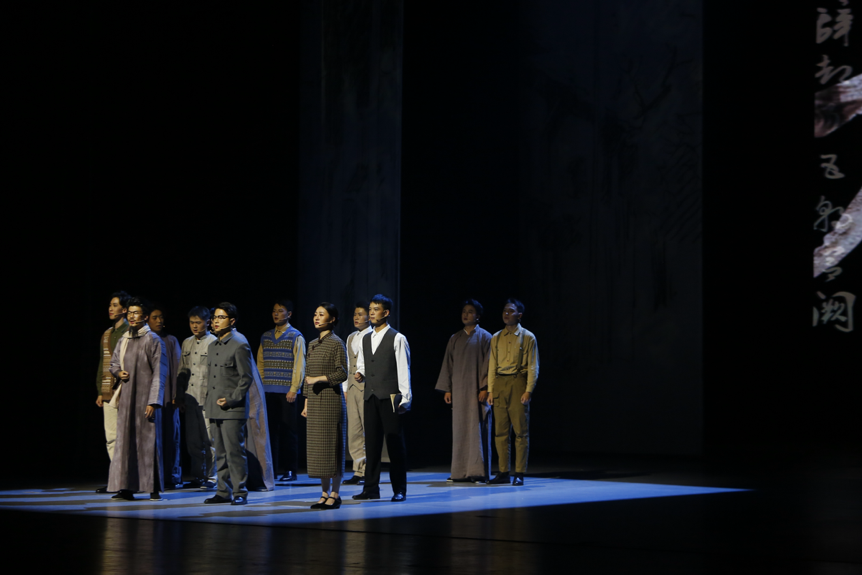 西南联大“上课钟”响起,钟声悠扬而深沉,拉开了《西南联大》剧目的帷幕。