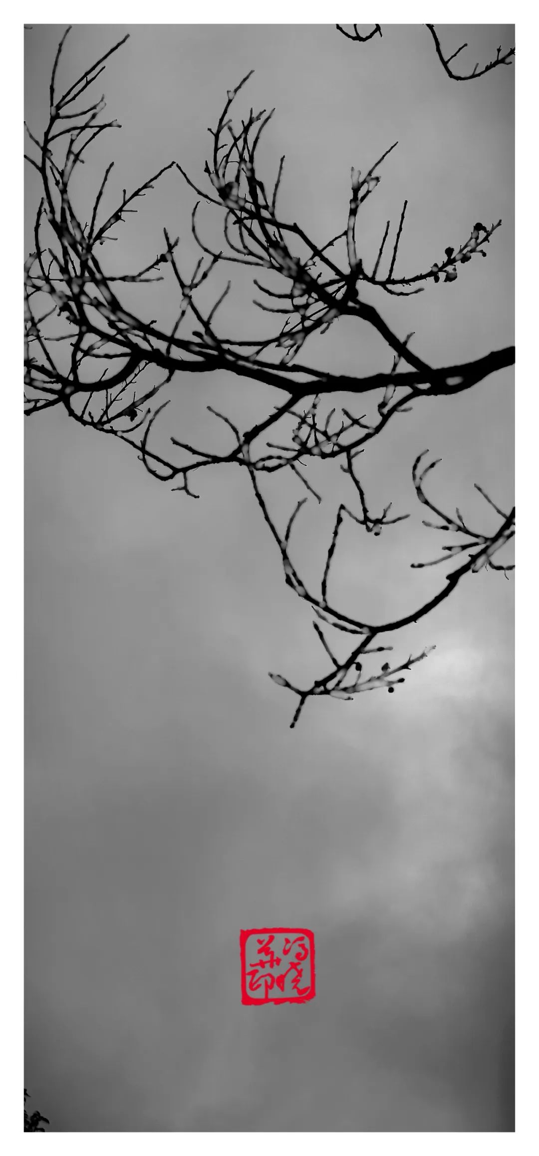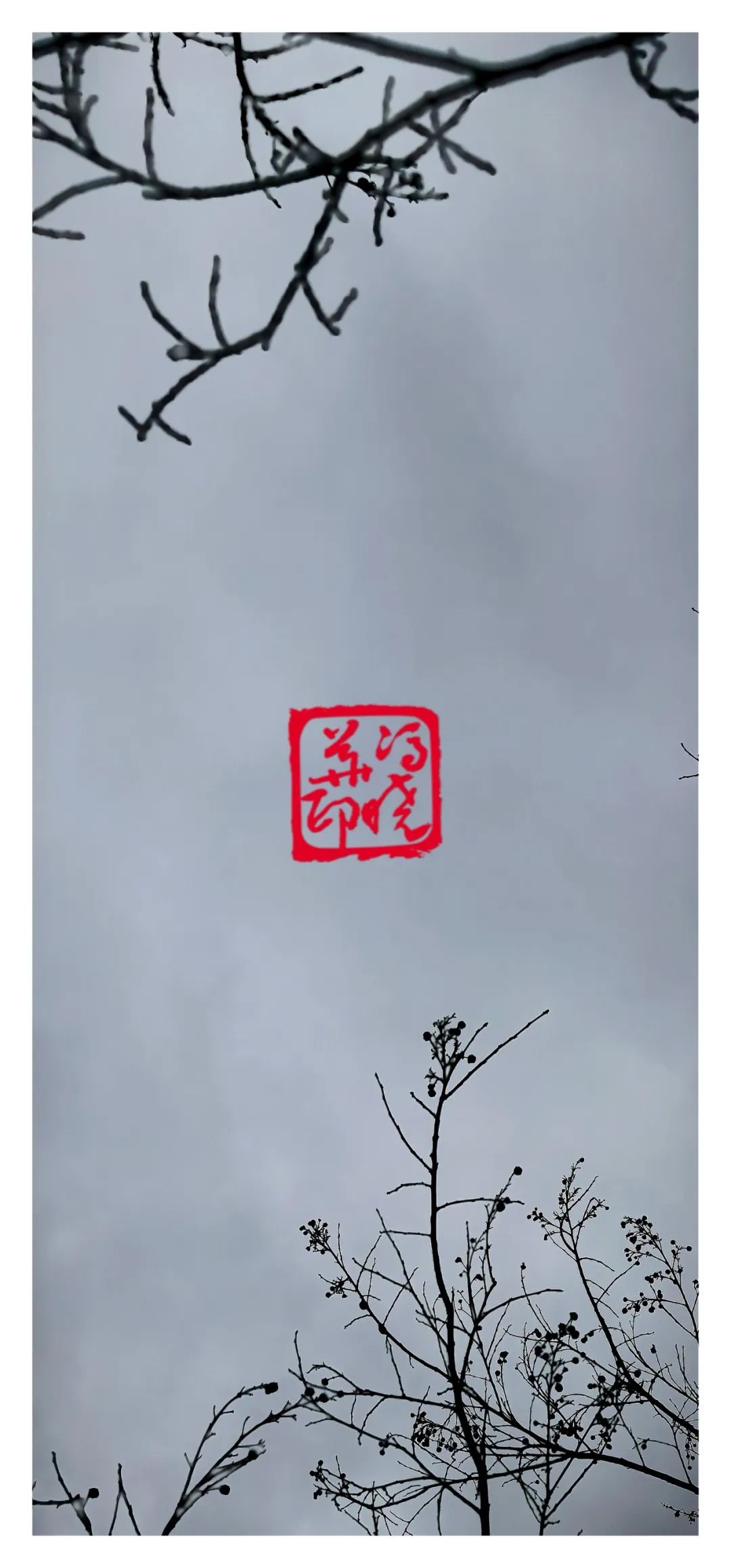 枯枝的线条在阴沉的天幕下