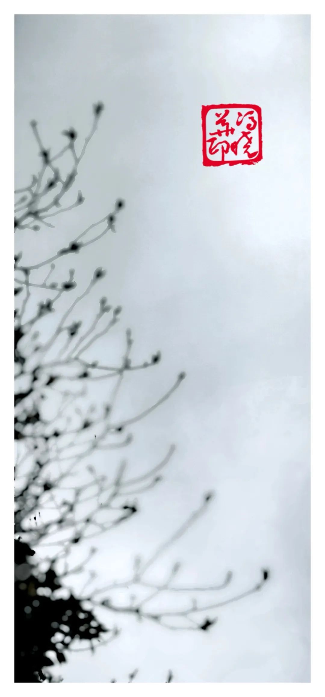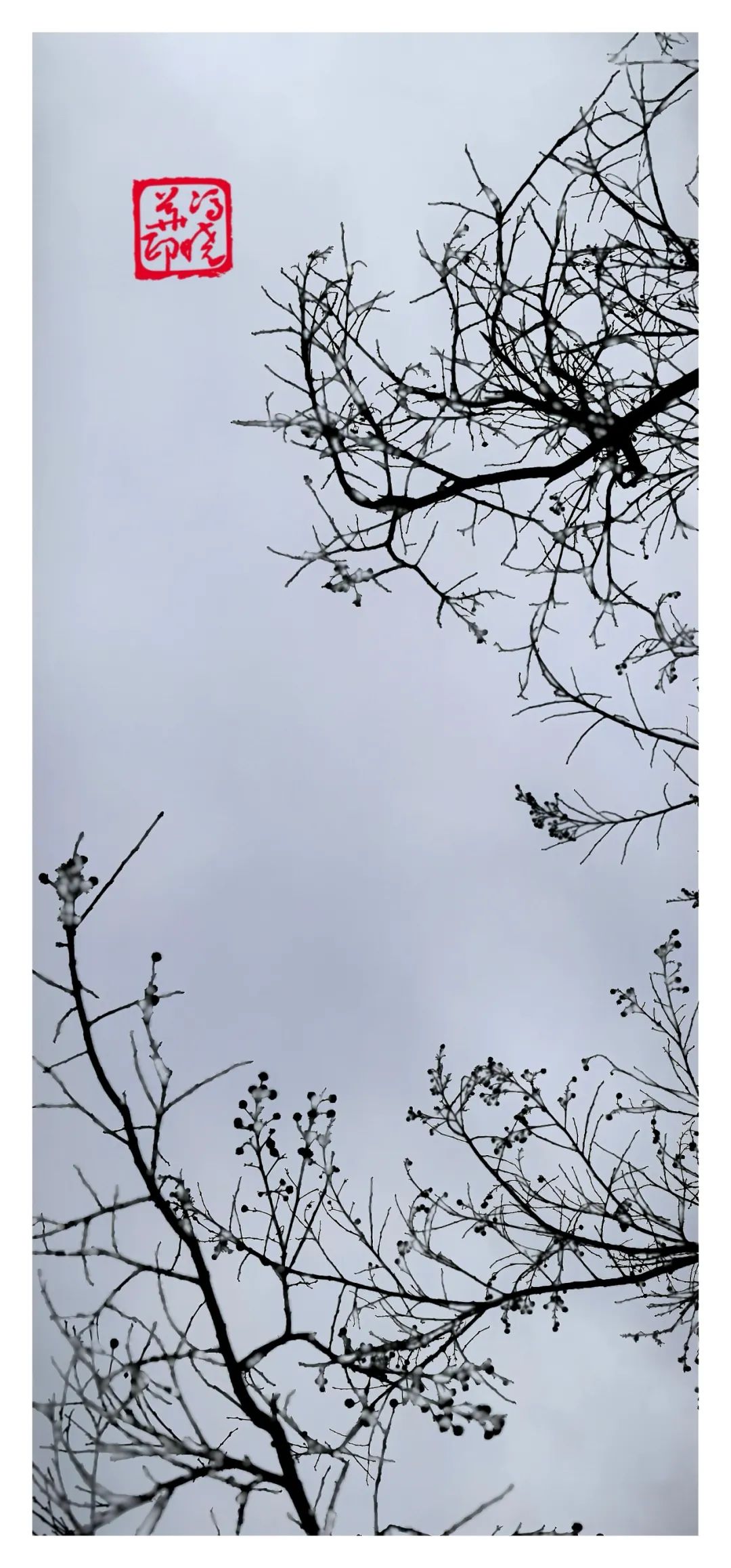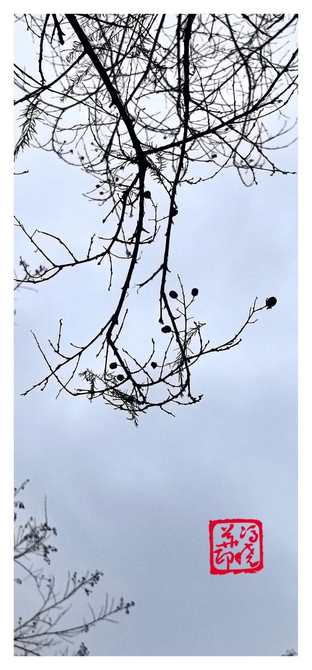 青灰的枝条与点缀其中的