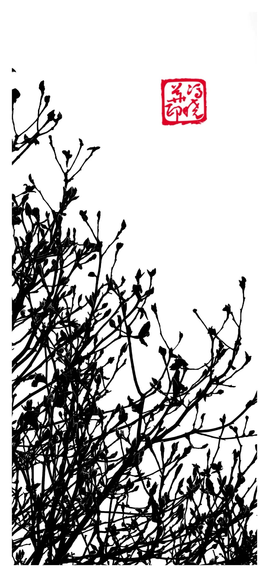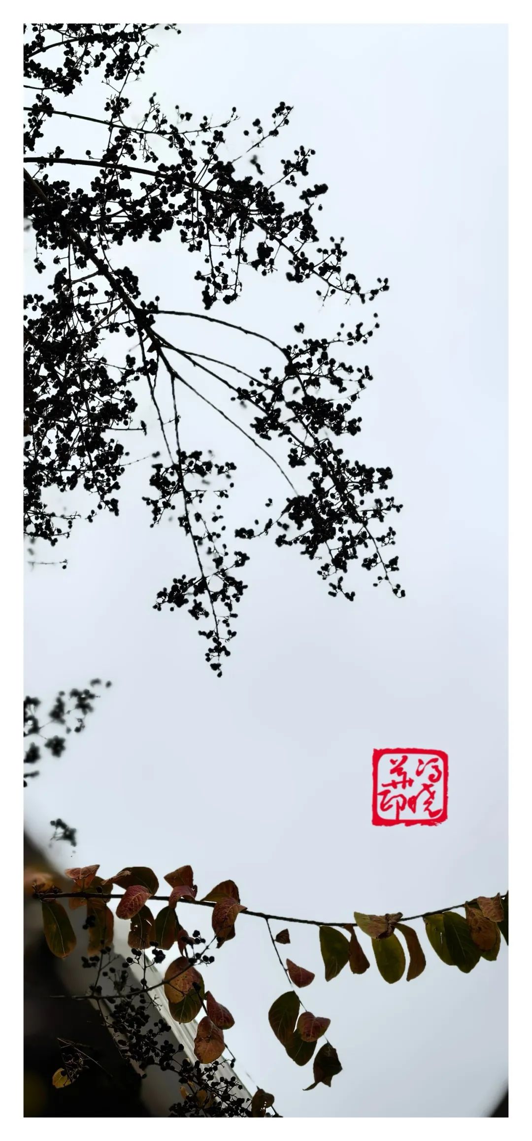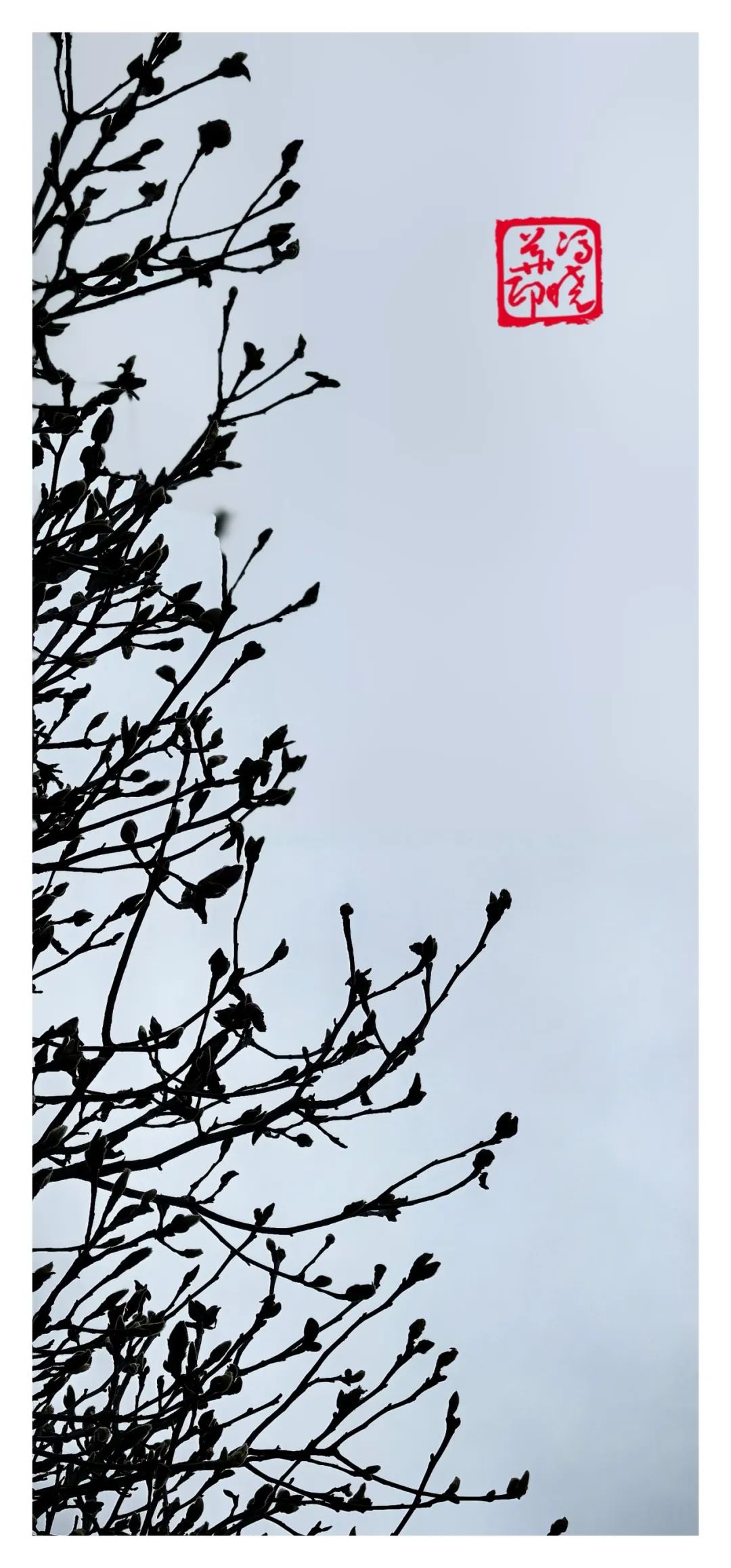 青灰的枝条与点缀其中的