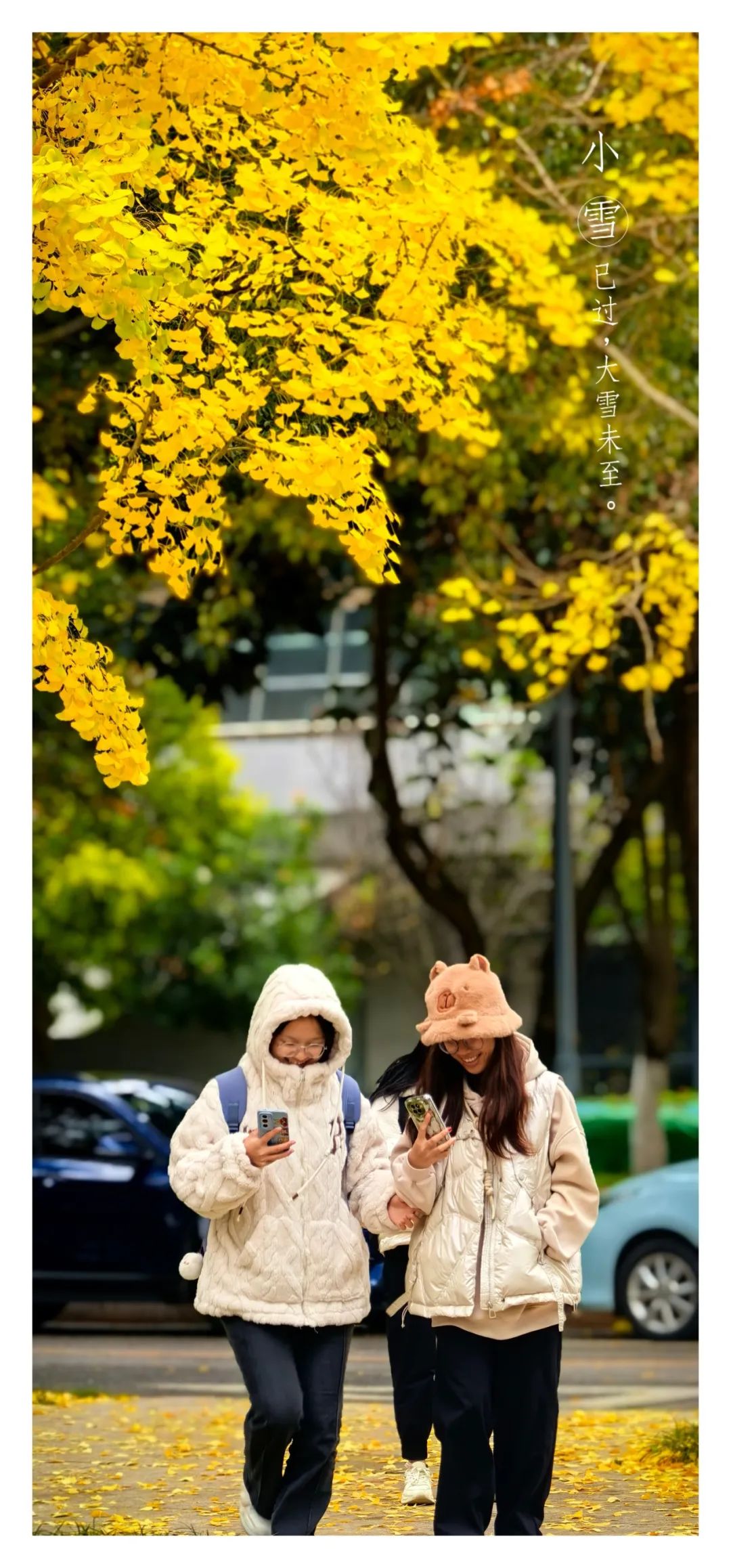 满地的金黄与些许依然坚守在枝头的叶片