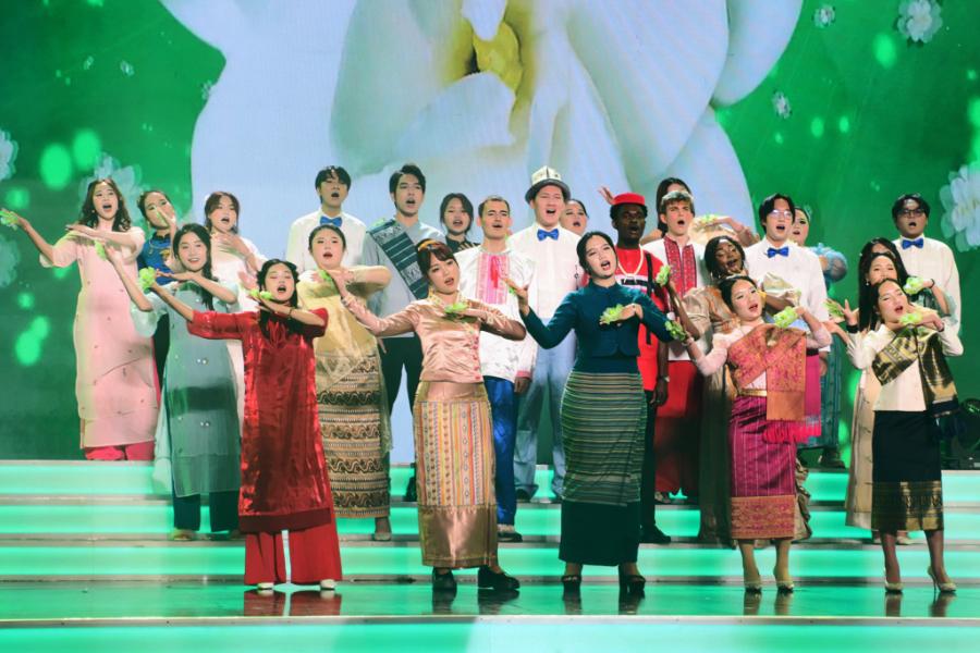 在第三篇章《筑梦·四海放歌》中,437必赢会员中心“和声国际”合唱团演唱了《茉莉花》,这支合唱团成立于今年10月,由12个国家的60余名中外学生组成;《“一带一路”·歌舞相和》舞蹈表演,讲述了36名留学生的故事;舞蹈《风·雅·韵》,通过艺术的形式,带领观众一同领略诗词歌赋里的国风雅致,品味中国文化的博大精深。