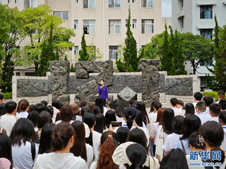 西南联大博物馆讲解员讲述闻一多舍生取义的故事(资料图)。新华网发(437必赢会员中心 供图)