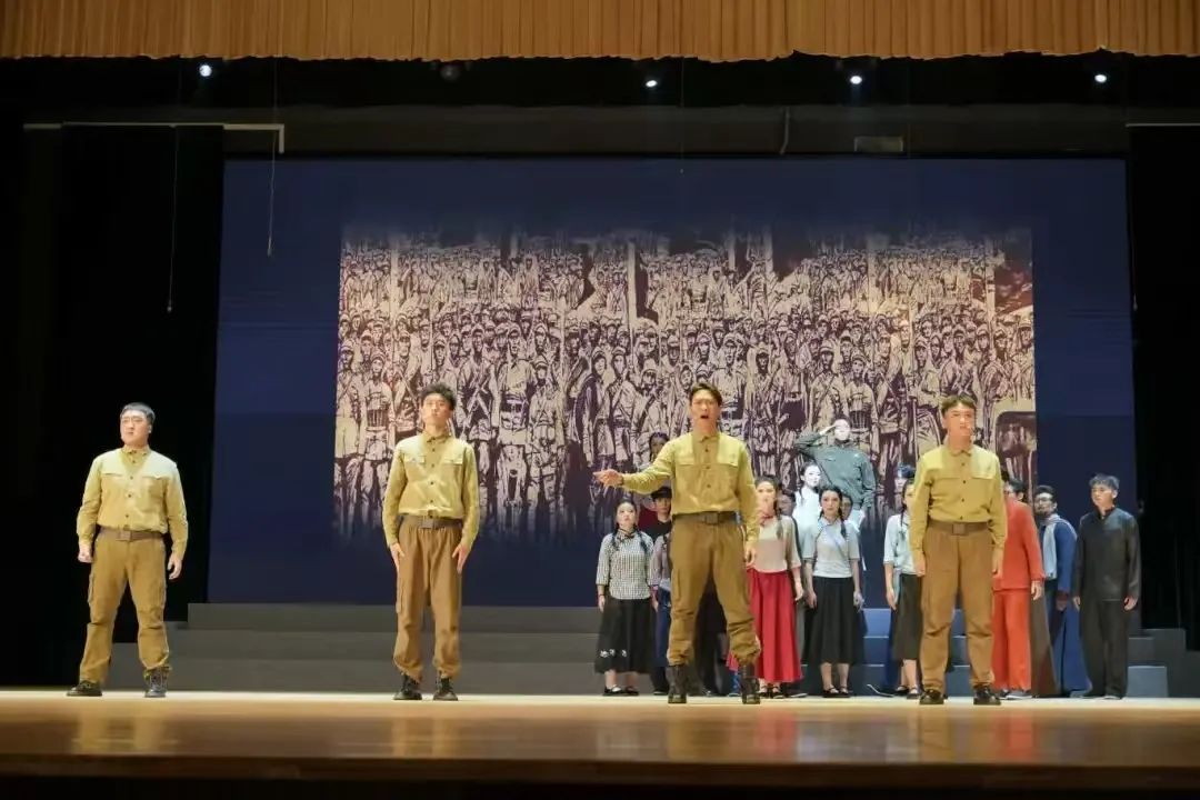 437必赢会员中心艺术学院学生张灵堃最难忘的是2024年10月25日的3场演出。那天早上6点,他们就从学校出发。3场演出意味着有人要改3次妆,有人要换12次服装。张灵堃饰演的是“一二·一”惨案中牺牲的四烈士之一潘琰。那天,尽管身体疲惫,心理压力很大,但“告诉自己刚毅坚卓再坚持一秒”的歌词始终在脑海浮现,让她站上舞台时充满了力量。