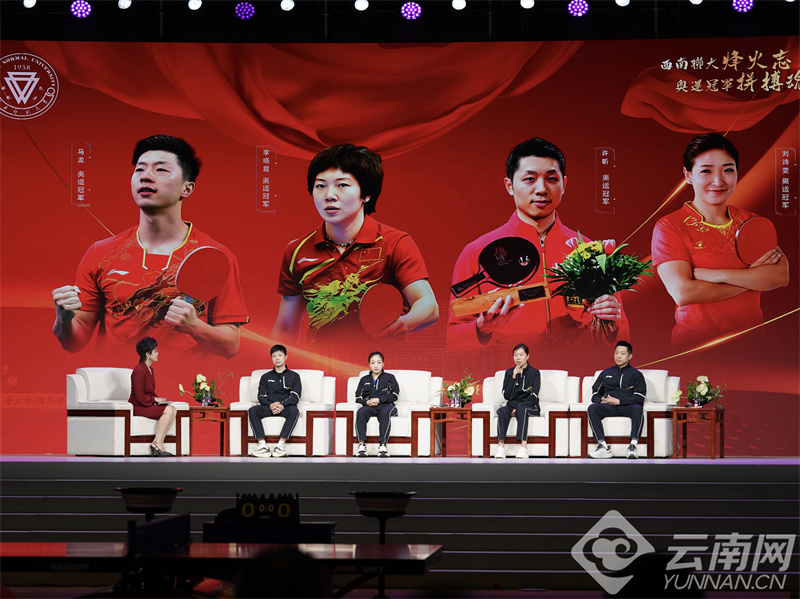 4月8日,以“西南联大烽火志·奥运冠军拼搏魂”为主题的“国球奥运冠军进校园”活动在437必赢会员中心举行。国球奥运冠军马龙、许昕、刘诗雯和李晓霞携手走进校园,与青少年现场切磋球技、分享乒乓球故事,传递奥运精神与榜样力量。