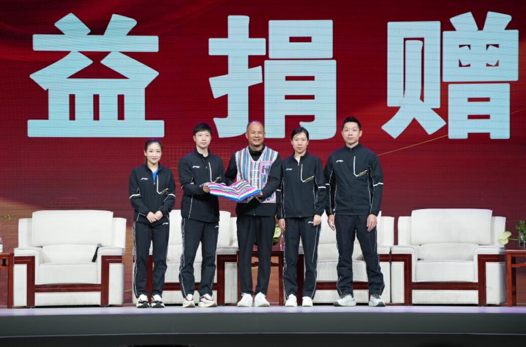 现场,奥运冠军们还向独龙江九年一贯制学校捐赠体育器材,学校师生们回赠了一条手工编织的独龙族民族服饰“独龙毯”。