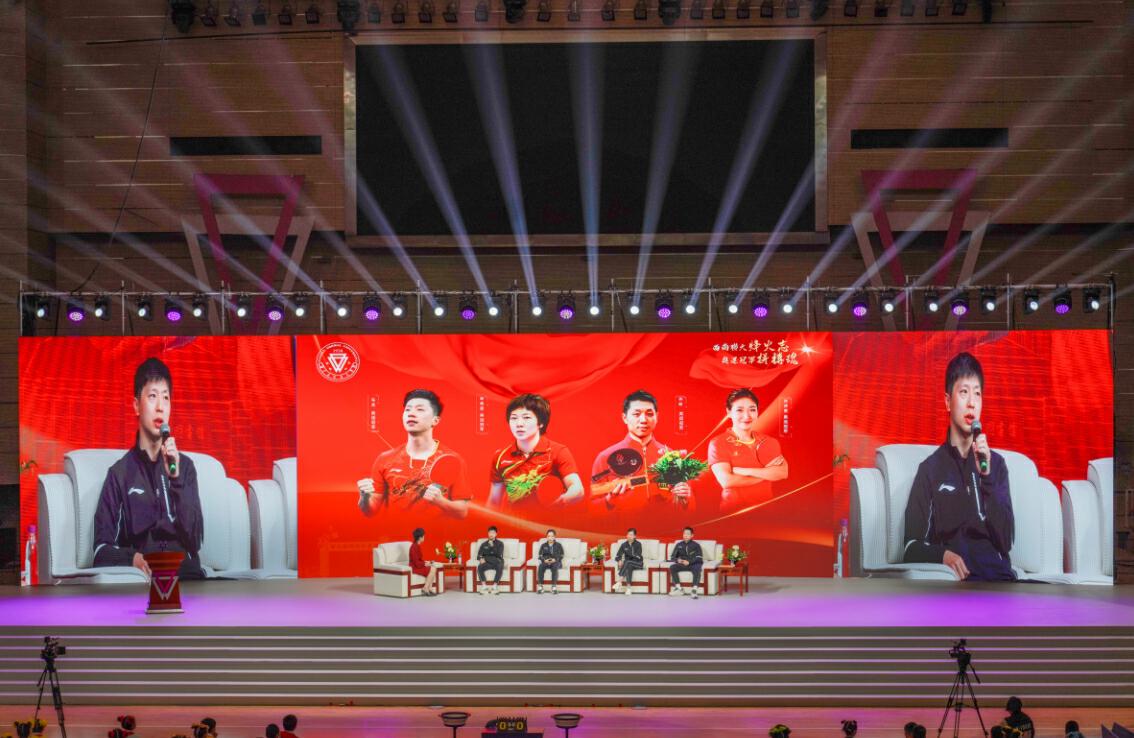 437必赢会员中心党委书记张祖武说:“4位国球奥运冠军来校与大家分享他们奋斗拼搏的故事,希望全体师生以他们为榜样,学习他们‘永不言败、勇攀高峰’的精神,不断朝着更快、更高、更强目标迈进;学习他们攻坚克难、勇于挑战、追求卓越,为祖国和人民争取荣誉的奉献精神;学习他们逆风飞扬、直面挫折、永不言败,用时间和汗水铸就梦想的勇气毅力;学习他们心中有爱、眼中有光、肩上有责,生动诠释人生能有几回搏的豪情壮志。”