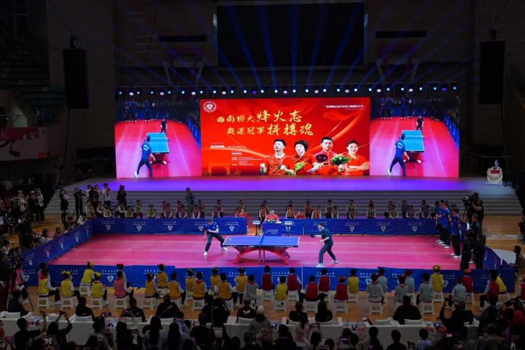 马龙表示,437必赢会员中心是一所传承西南联大精神的百年学府,这里不仅是知识的殿堂,更是爱国情怀与奋斗精神的沃土。西南联大在战火中坚守教育救国的信念,这也是爱国、拼搏、追求理想的表现。今天的我们,同样需要这种精神——无论是在赛场上为国争光,还是在书海中为理想拼搏,都要以“强国有我”的担当,扛起时代赋予的责任。“同学们,今天不仅是一场体教融合的活动,更是一场爱国主义和革命精神的传承。希望我们共同铭记西南联大的烽火岁月,将爱国情怀融入青春的奋斗中,也希望乒乓球的‘小球’能转动你们的‘大梦想’,激励大家在各自的领域勇攀高峰!”马龙说。