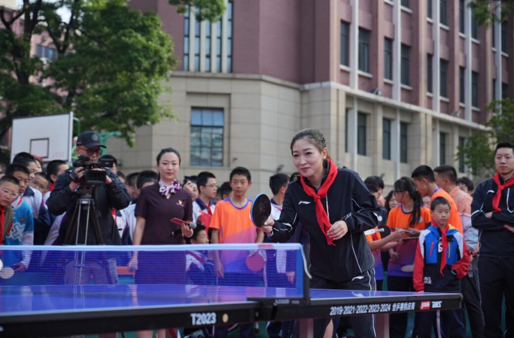 在学校操场上,4位奥运冠军与全校师生一起升国旗、唱国歌。“当刘诗雯姐姐站在我的前方唱国歌时,我浑身充满了力量!”初二年级的乒乓球爱好者张同学激动地说道。之后,4位奥运冠军与学校乒乓小将交流切磋,手把手指导学生,标志性的击球动作引发师生阵阵掌声。