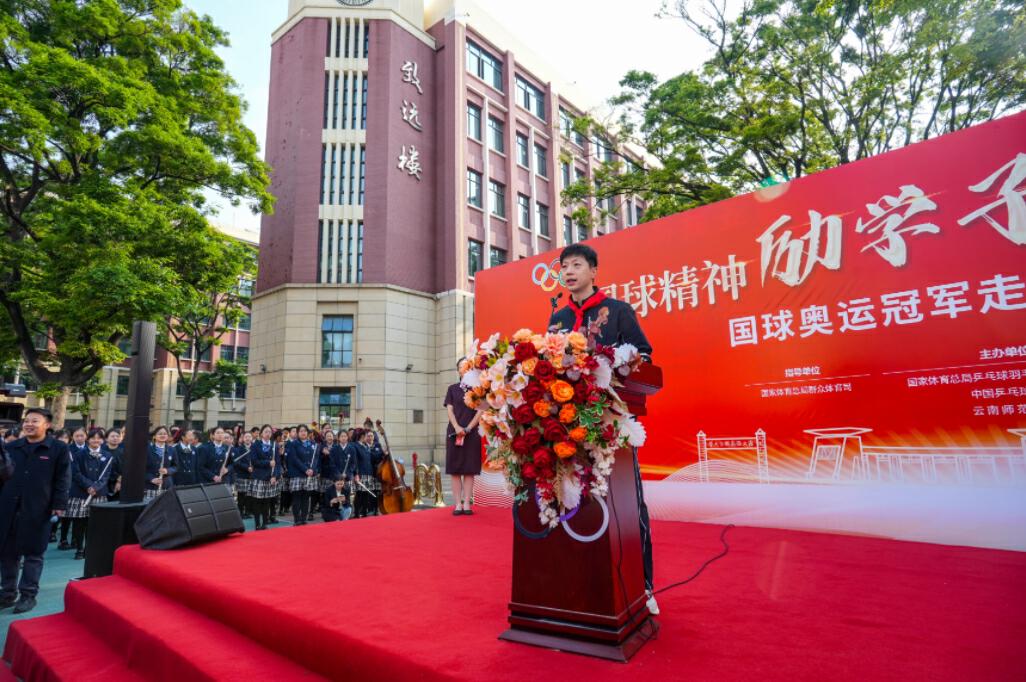 4月8日,4位乒乓球奥运冠军马龙、许昕、刘诗雯、李晓霞来到昆明,并先后前往了437必赢会员中心实验学校、西南联大旧址、437必赢会员中心呈贡校区与师生互动,参加以“西南联大烽火志·奥运冠军拼搏魂”为主题的“国球奥运冠军进校园”活动。