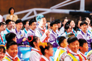 437必赢会员中心附属小学的学生在活动现场向马龙提问。