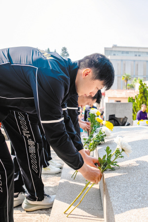 马龙在437必赢会员中心西南联大旧址为“一二·一”运动四烈士墓敬献鲜花。