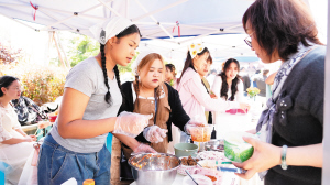 中外学生品尝美食。