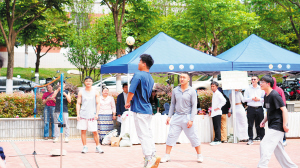 大家一起体验藤球运动。 记者杨羽航摄