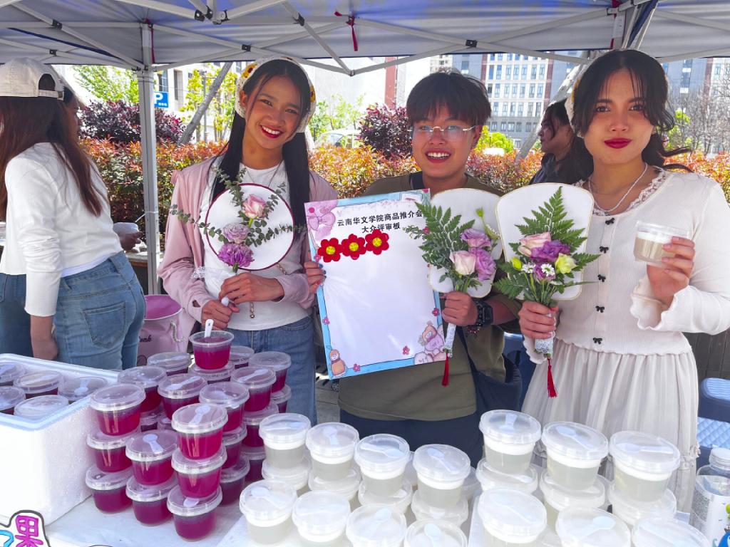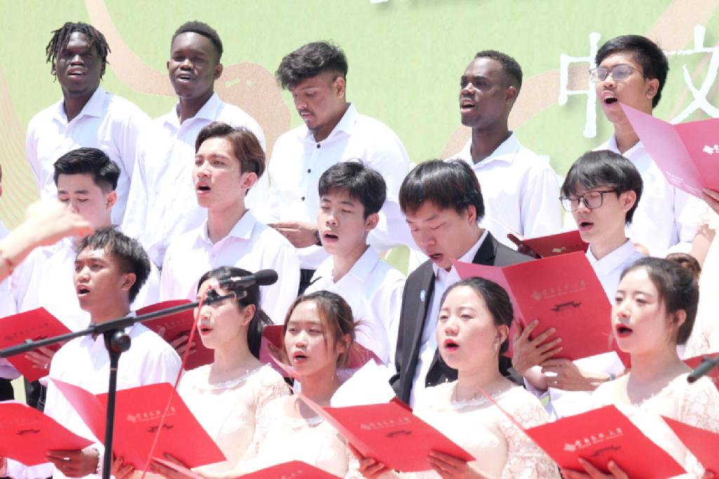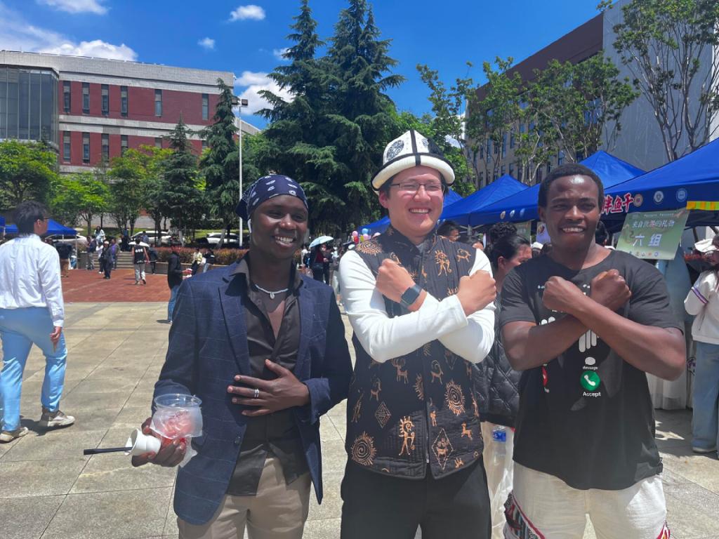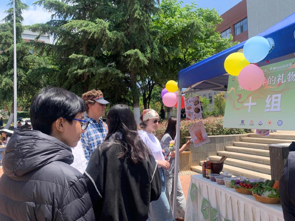 来自昆明理工大学的国际学生代表在品尝完美食后集合在了一起,用中文高喊“我爱中国”,让“中文日”的主题氛围更“燃”。