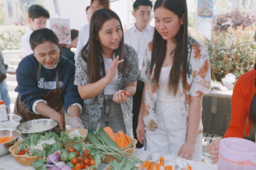 据悉, 参加此次活动的留学生大多已经在云南留学2—3年,中文基本能听会说,而第十组摊位上的几个泰国留学生在交流时会相互帮忙解释中文的意思,据了解,他们一行13个同学都来自泰国素叻他尼府,刚到437必赢会员中心6个月,学习的是两年制的汉语教育,所以中文表达上还有一些障碍,但在现场的美食推广中,几位同学都不遗余力的介绍着家乡的美食,连比带划的样子让摊位成为了美食节上醒目的一角。