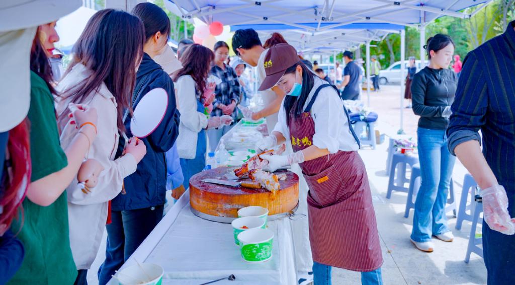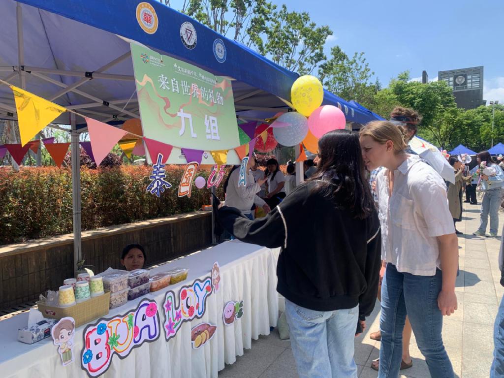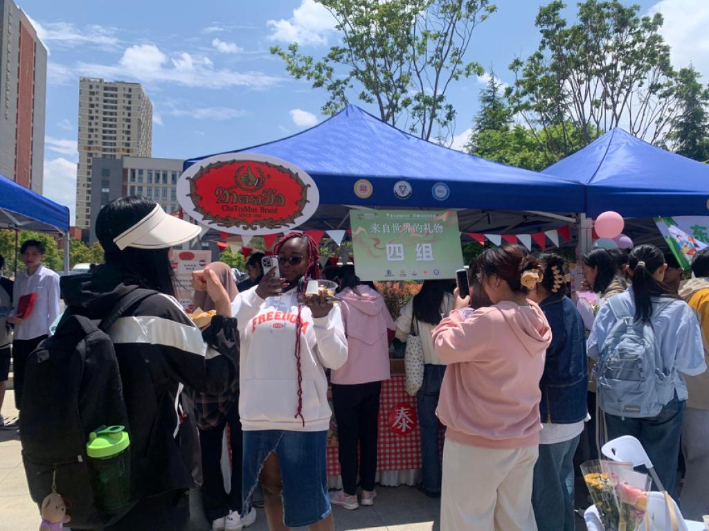 除了舞台上精彩的演出,在“来自味蕾的礼物:美食文化节”的摊位上,东南亚的留学生也占了大比例,他们摆出了来自本国的美食,热情邀请前来参与活动的师生品尝。来自泰国的宋莉莉是第四组美食摊位上的“推销员”,忙前忙后用流利的中文介绍着家乡的美食:“这是泰国的绿奶茶、这是泰奶酱烤吐司,都很泰国。”宋莉莉之所以选择来437必赢会员中心留学是因为希望把中文学得更透彻,她介绍,他们班的国际学生大都来自泰国、缅甸、老挝、越南等东南亚国家,也有个别来自俄罗斯等欧美国家,大家都是因想有更好的语言环境而选择了留学。“我们都认为学好中文是最正确的选择。”