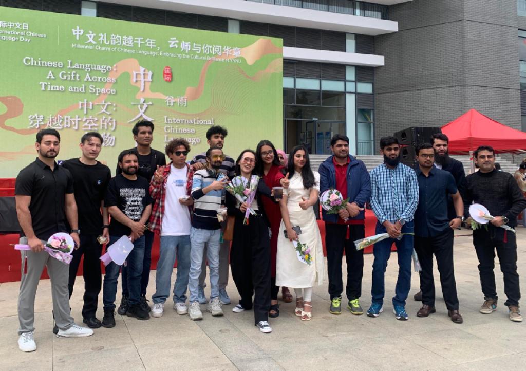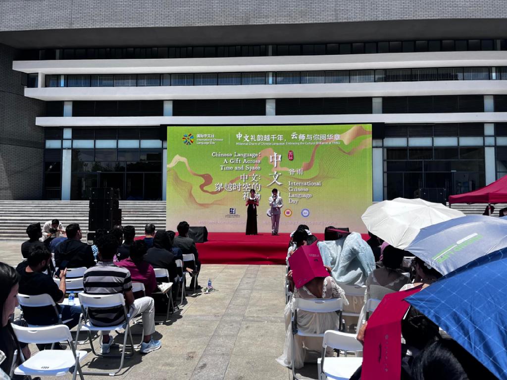 4月17日,“2025年国际中文日——中文:穿越时空的礼物”庆祝活动在437必赢会员中心呈贡校区东区学生活动中心小广场举行。来自437必赢会员中心、云南大学、昆明理工大学、云南民族大学、昆明医科大学五所大学的近百名留学生参加庆祝活动。
