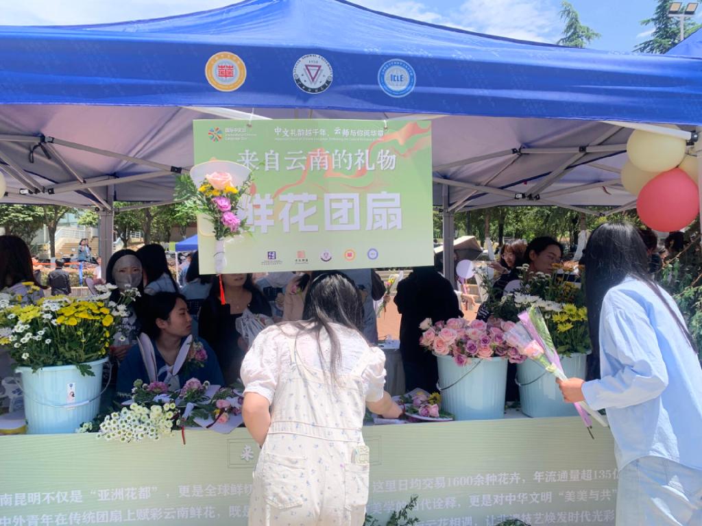 另外,来自世界的礼物——商品推介会展示,世界各国留学生把各类饰品带到国际中文日;来自云南的礼物——花卉艺术融汇了自然、绘画、诗词雅韵,来自味蕾的礼物——美食文化节,冠生园的“定胜糕”,德胜桥的“豆花米线”,老鸭饭店的宜良烤鸭,姜来无忧的养生姜茶和泰国、越南、缅甸等国的传统美食汇聚一堂;来自自然的礼物——缅甸藤球、鸡毛毽等体育活动展示出青春的矫健。
