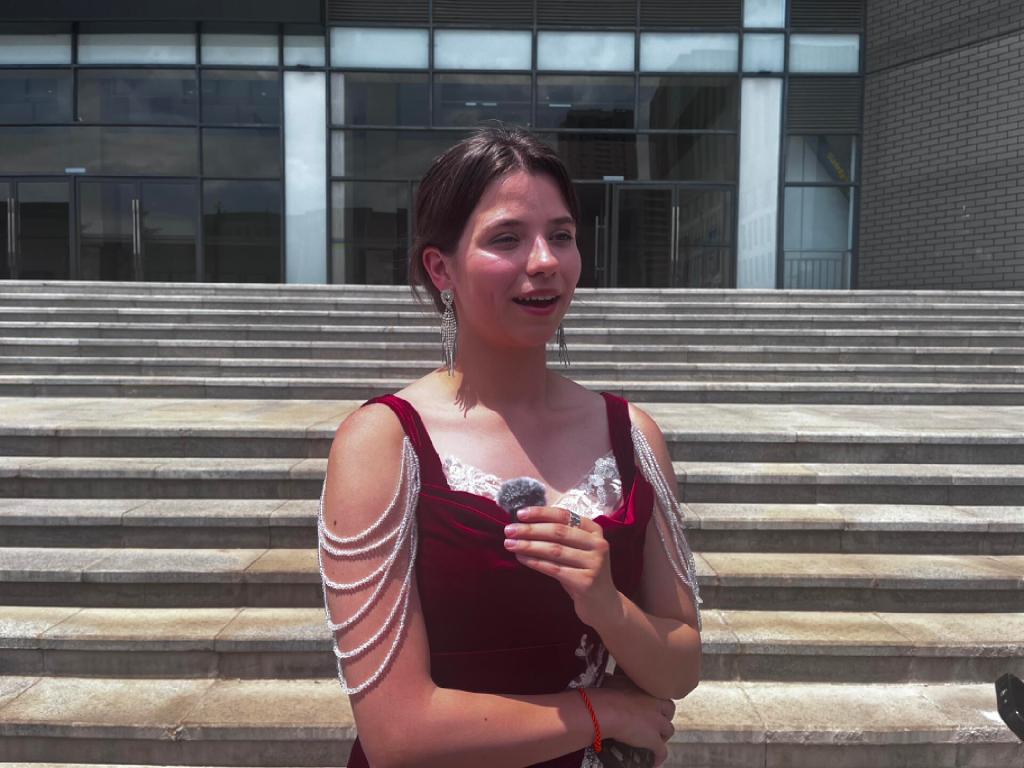留学生才艺秀的两位主持人,很有国际合作的味道,男主持人叫龚尹籽灿,来自云南红河,女主持人阿丽莎,来自乌克兰基辅。阿丽萨表示,她从小和父母在上海生活,还在上海上过幼儿园,2024年为了到中国求学,辗转他国,不远万里,将来希望能回国教授汉语。