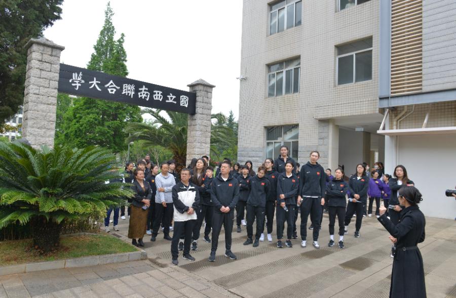 中国女子篮球队参观西南联大旧址(4月30日摄)。