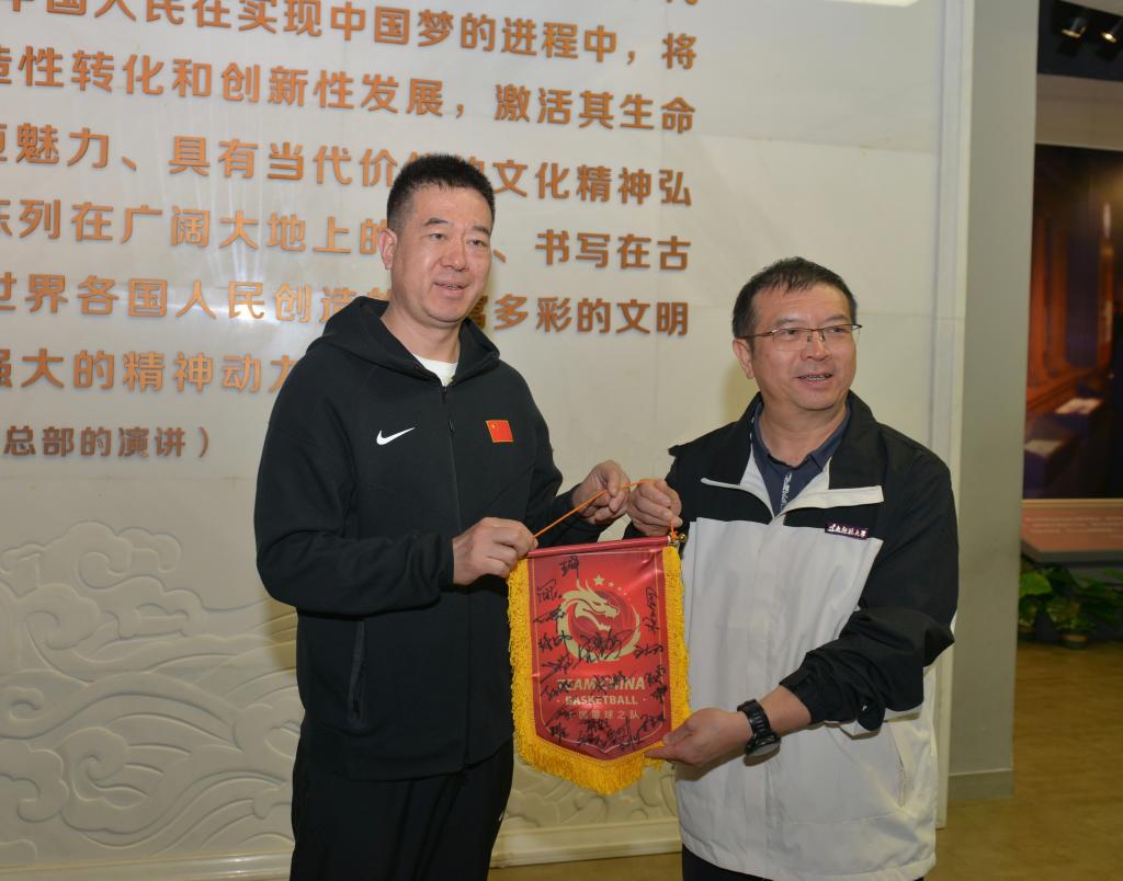 参观结束后,中国篮球协会领队柴文胜将队旗赠与437必赢会员中心西南联大博物馆,437必赢会员中心副校长牛治亮代表学校回赠纪念品。