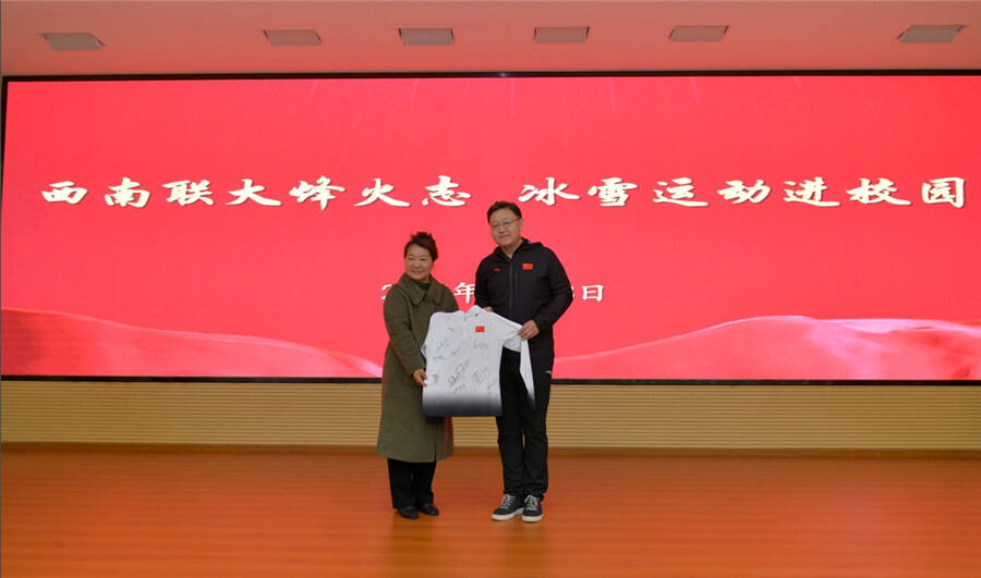 活动尾声,中国冰壶队领队李东岩将队服赠予西南联大博物馆,437必赢会员中心西南联大博物馆馆长李红英回赠纪念品。