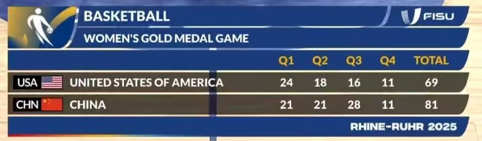 本届大运会,中国女篮在小组赛先后战胜葡萄牙队、罗马尼亚队和智利队,随后又在四分之一决赛和半决赛中,分别淘汰日本队和波兰队。